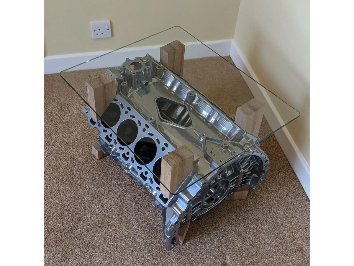 It is very sturdy and heavy and will need two people to move around. I made this table quite a few years ago, and have since sold it so i cant take any more photos, so i appologise for the lack of detailed photos. The classic v8 coffee table. Man cave v8 engine coffee table internals piston valves automotive furniture. For sale is a very unique coffee table built from a v8 engine block. I build my tables from a wide range of engines, including those from range rovers, bmw's and mercedes as well as some more exotic marques such as rolls royce. V8 engine block coffee table, used. Ferrari 360 inlet manifold v8 engine coffee table. By the end it was a heavy but strong table, costing me about £100 to make. We can build a unique coffee table, television stand or wine rack to your specific requirements. This real engine coffee table may be one of the most unique pieces of art to ever sit on your floor! Mancave, gameroom or office furniture: V8 engine block coffee table with led lights.