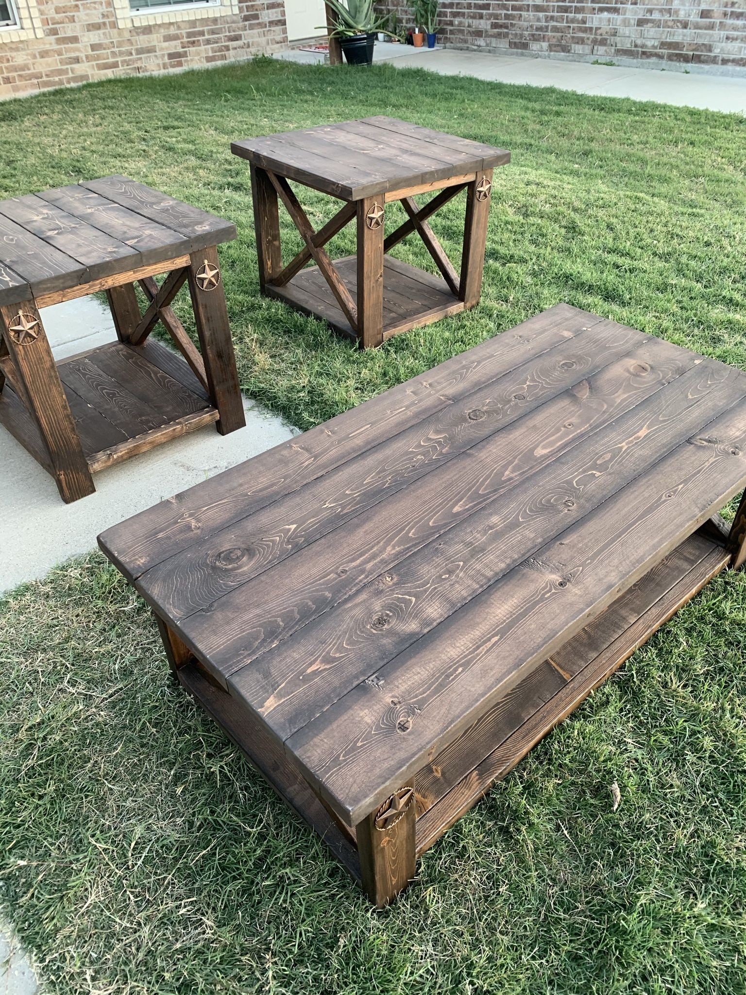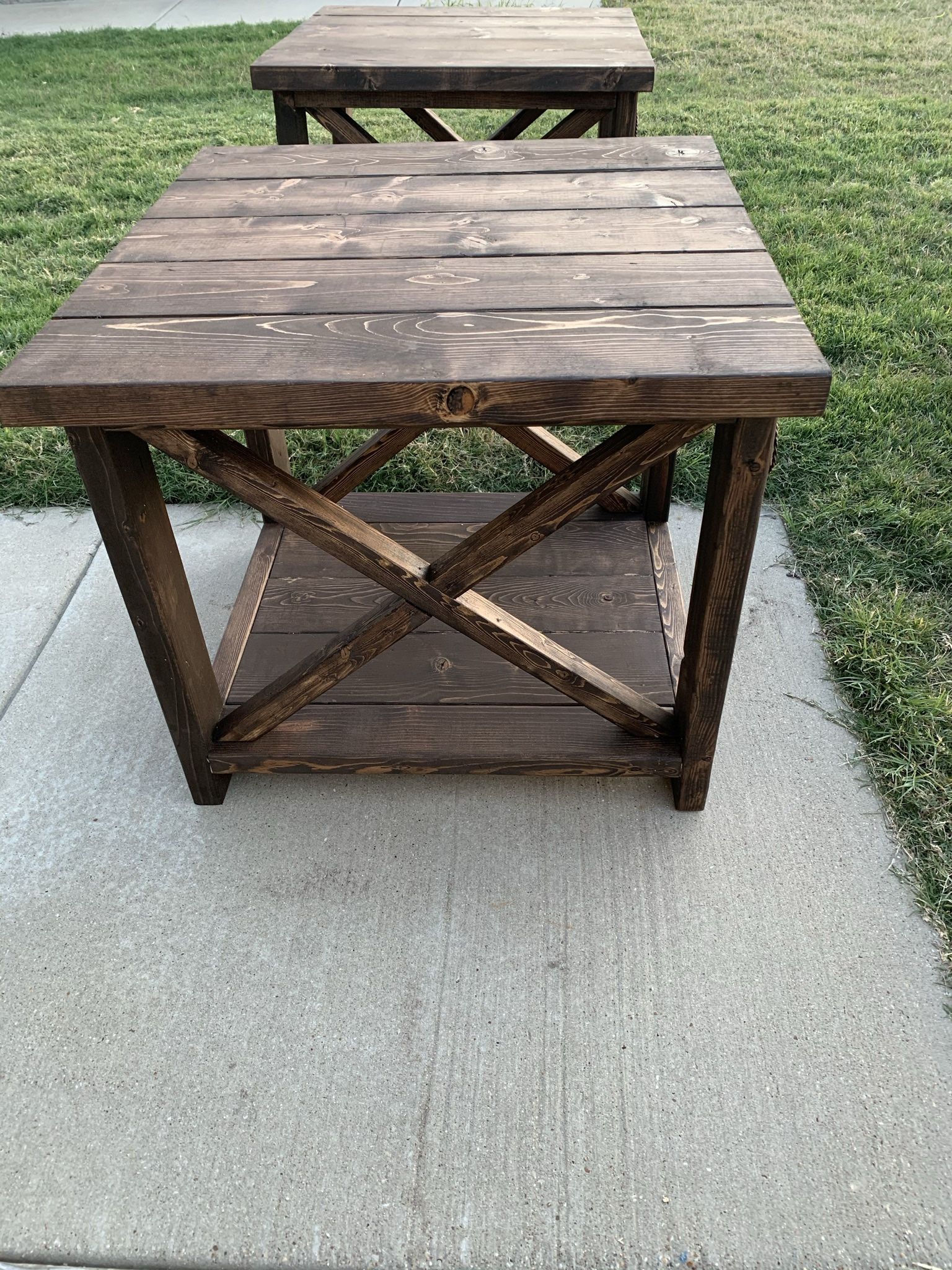 Ana White | Rustic X Coffee and End Tables - DIY Projects from www.ana-white.com 112m consumers helped this year. The corners and the big brad nails really make them pop! Such x planks make the look more elegant. Such rustic boards can stay simply on four ordinary legs, as well as have such they are called rustic x end table. Check out our rustic coffee tables and end tables selection for the very best in unique or custom, handmade pieces from our coffee & end tables shops. Rustic log coffee and end table set pine and cedar (honey pine). Top rated from our brands. Rustic coffee tables and end tables.
